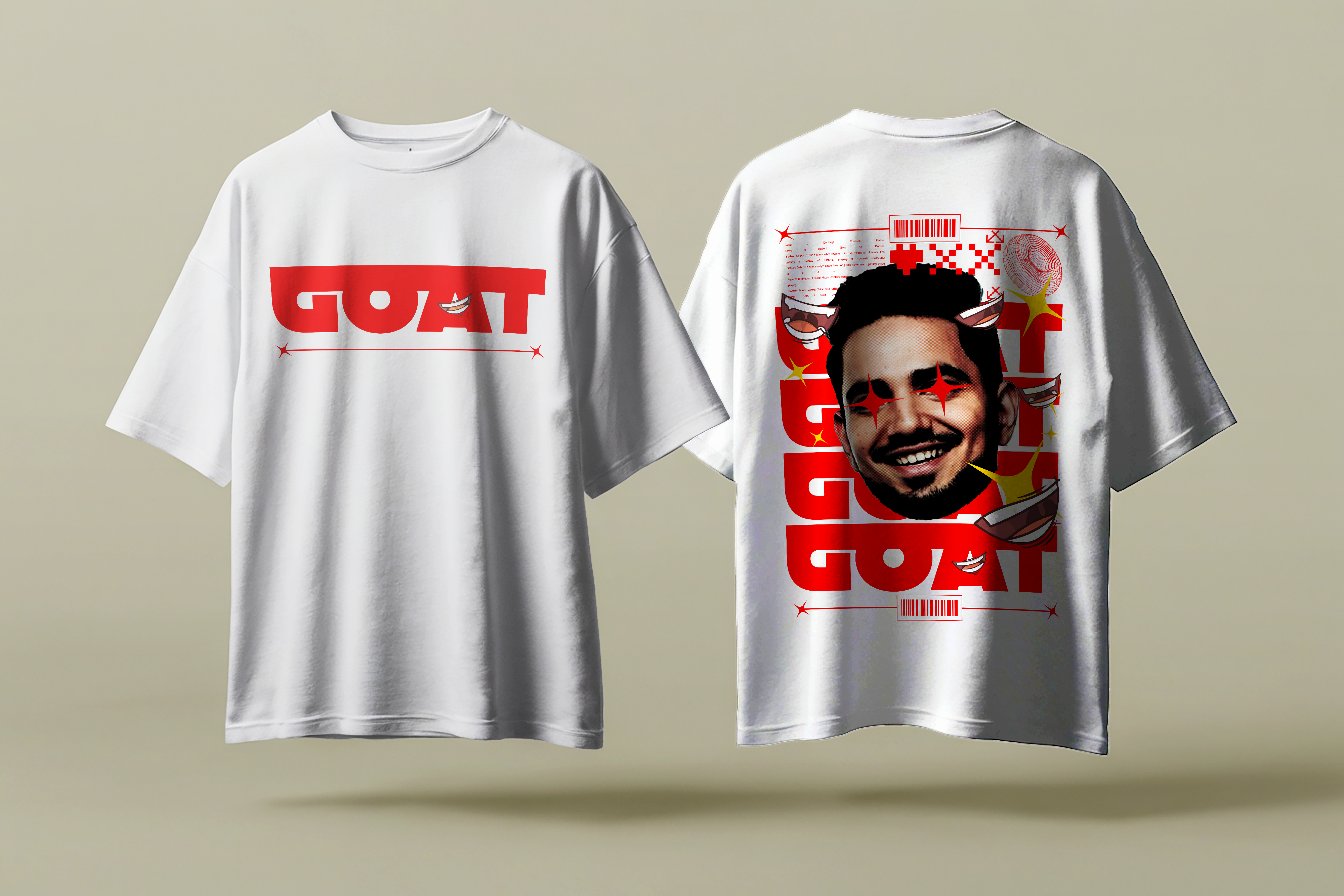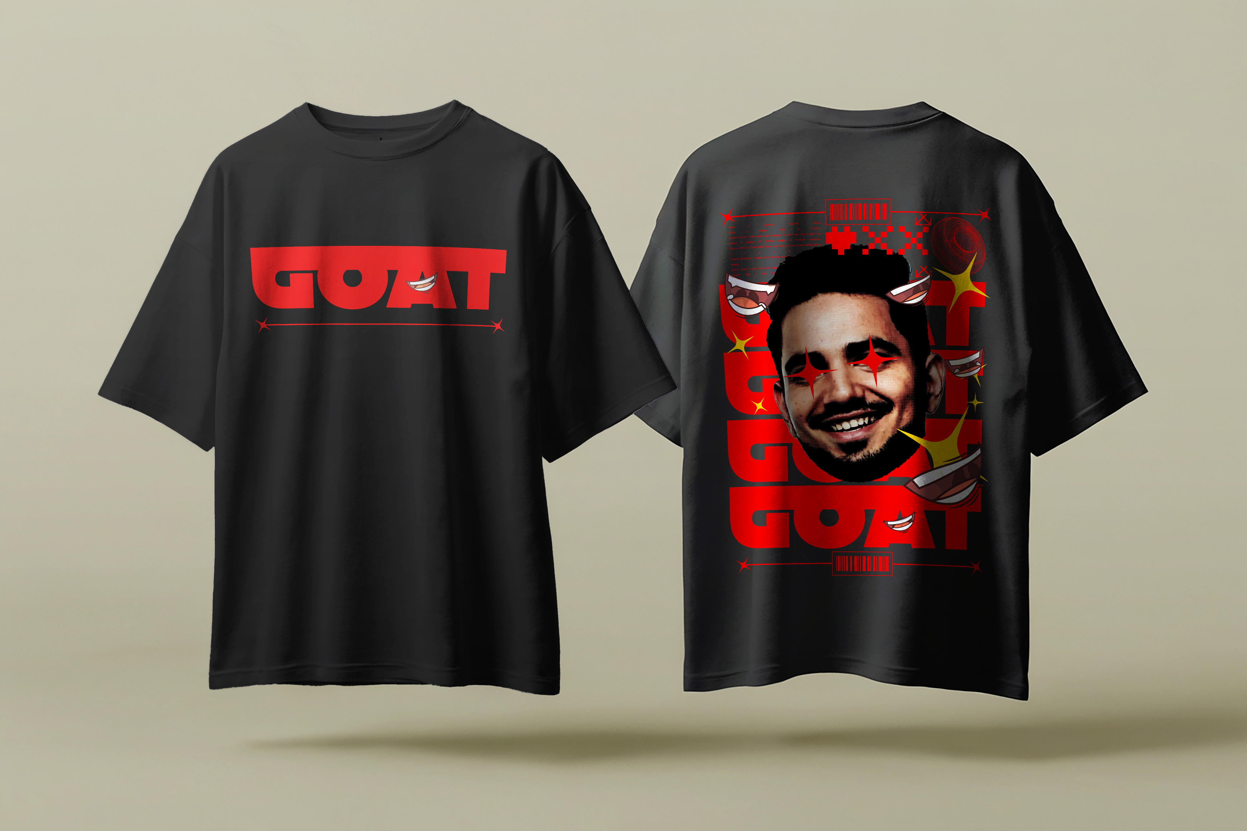 Crowned with icons, this tee is for the legends. Featuring a bold face portrait overlaid with sneaker sketches, star motifs, and crown graphics, it blends basketball energy with hip-hop glory. Red accents elevate the monochrome power punch.