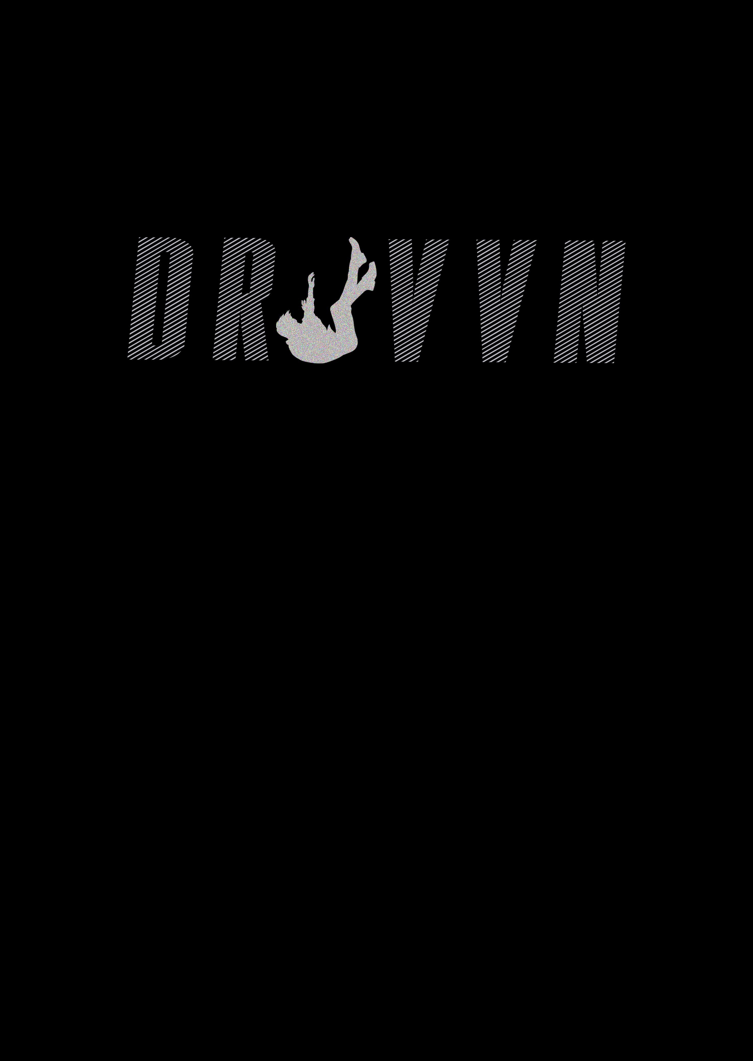 Front Detail: "DRVVN" in distressed typography with a faint falling silhouette — a subtle nod to the mind’s descent into thought